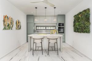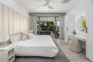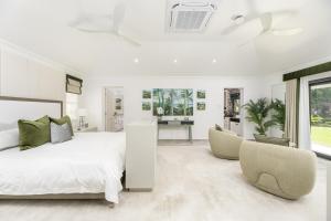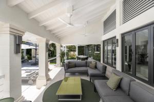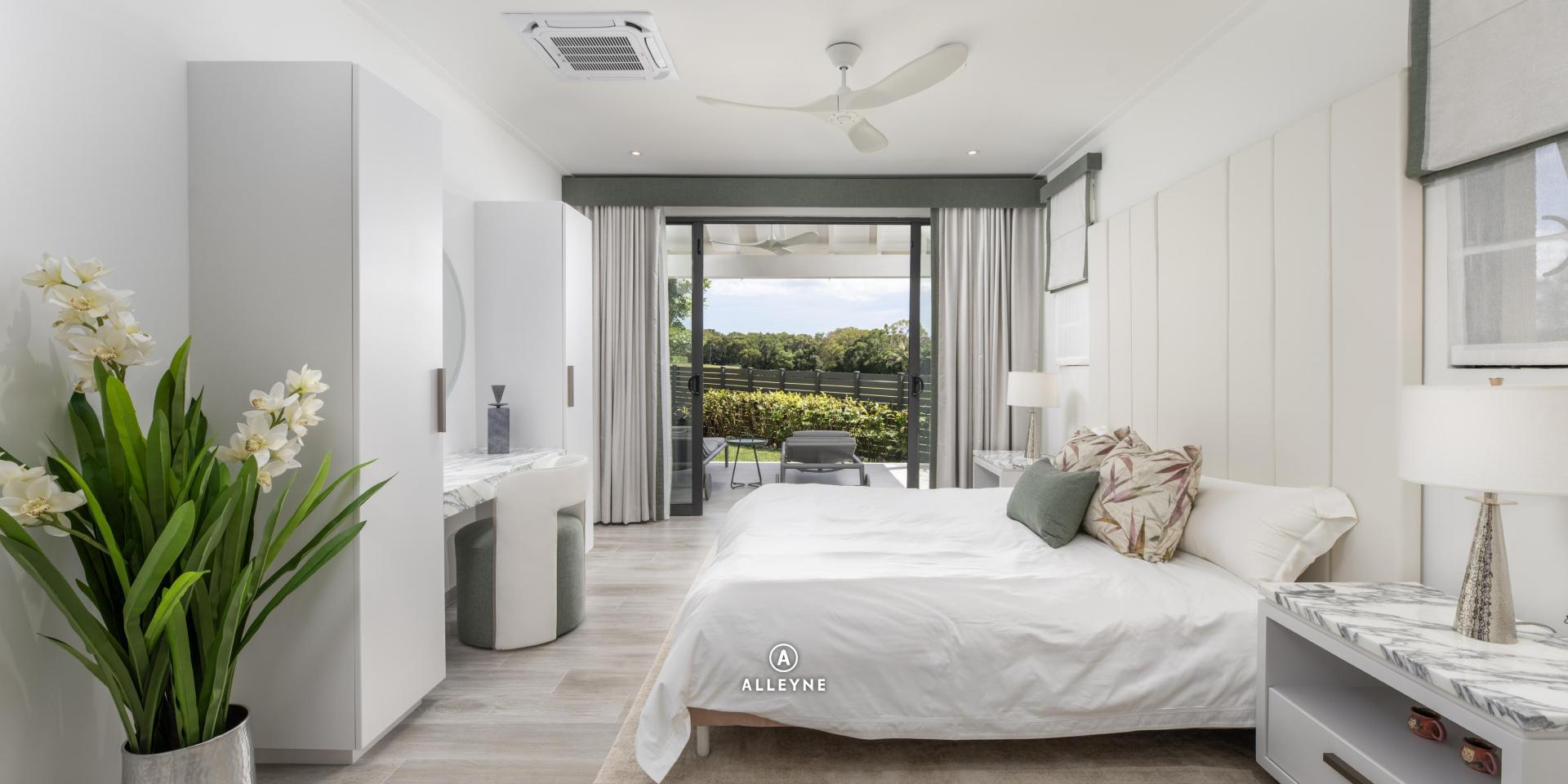 Life at Mahogany Grove is centered around an effortless indoor-outdoor flow. The living spaces open onto a patio adorned with a lush, planted wall feature, leading to a stunning saltwater swimming pool. Whether hosting at the pool bar or enjoying a selection from the twin wine coolers in the living room, every comfort is considered. Climate control is mastered through a combination of inverter technology ceiling fans and air conditioning in all bedrooms, ensuring a cool breeze throughout the tropical days.