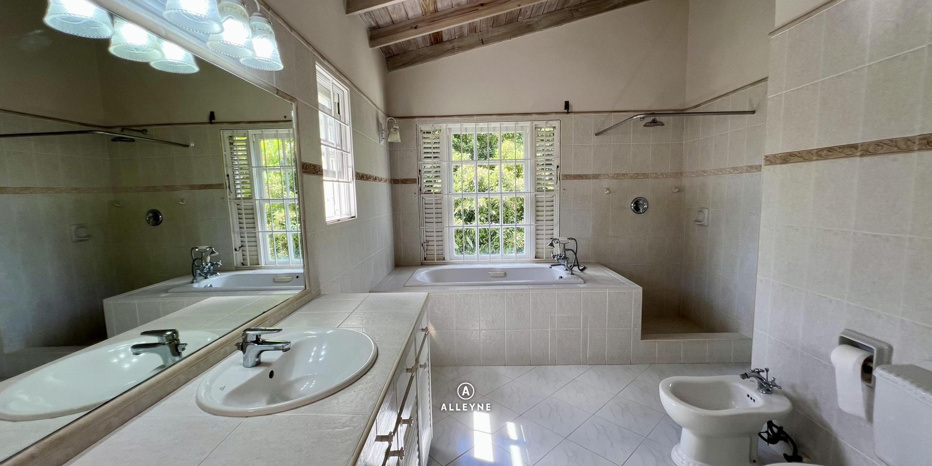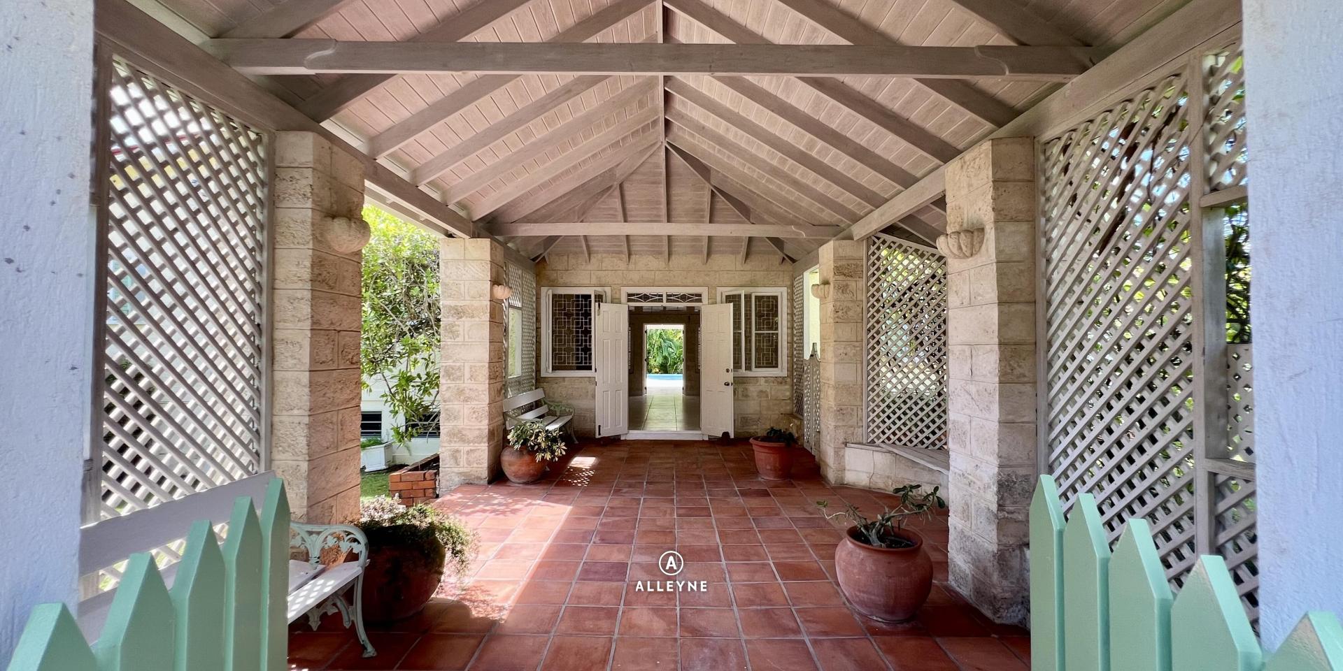 Security features include grills on all windows and doors, roll-down hurricane shutters, and wooden shutters. Flooring throughout the home is tiled, with Terrazzo on the verandah, clay tiles at the entrance, and a painted finish in the basement.